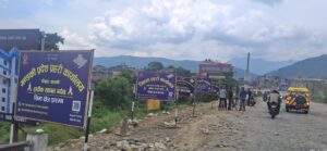 गैंडाकोट, भाद्र १० । गण्डकी प्रदेश र बागमती प्रदेशको सीमामा पर्ने नारायणी पुल नजिकैको महेन्द्र राजमार्ग अहिले सडक भन्दा पनि प्रदर्शन स्थल जस्तो देखिन्छ। करिब ५०० मिटर लामो सडक खण्ड खाल्डा,खुल्डी, धुलो, हिलो र धुवाँले बिग्रिएको छ। तर, त्यसकै छेउछाउमा सरकारीदेखि निजी कार्यालयका होर्डिङ बोर्डहरूको रंगीन प्रदर्शन भने धमाधम चलेको छ।
