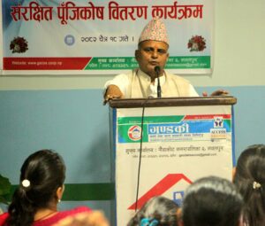 संस्थाका उपाध्यक्ष केदारनाथ न्यौपानेले स्वागत मन्तव्य व्यक्त गरेको कार्यक्रममा पूर्वअध्यक्ष देवराज पौडेल र सल्लाहकार बेदप्रसाद गौडेल लगायतले शुभकामना मन्तव्य राखेका थिए। संरक्षित पूँजीकोषबाट प्रतिफल प्राप्त गर्ने सदस्यहरूको तर्फबाट कृष्णामुरारी खनालले संस्थाप्रति आभार व्यक्त गर्दै आगामी दिनमा थप सशक्त सहकार्यको अपेक्षा व्यक्त गरिन्।